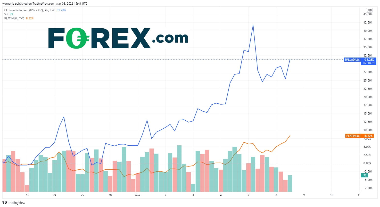 俄罗斯也是其它大宗商品的生产大国,俄乌冲突同样造成这些金属价格飚升。值得注意的是,镍是一种副产品,在公司开采地底其它各种各样的金属,比如其它的铂族金属(PGM)时被一起开采出来。钯和铂就是铂族金属成员,随着俄乌危机爆发,两者的价格也在上涨。