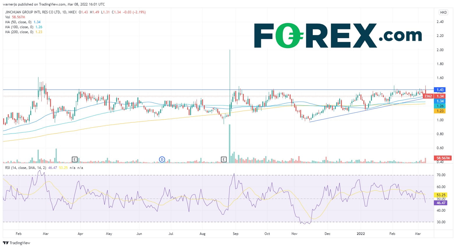 金川集团股价自11月中旬以来不断攀升但一直难以攻克1.49。该位在过去一个月里多次破坏了股价的上涨努力。所以,价格收上该位才有机会启动短线上涨趋势,重新上看20212月高点1.55。如果受制于1.49且上涨动能耗尽,股价可能迅速回到三根移动均线下方,最终跌破1.26