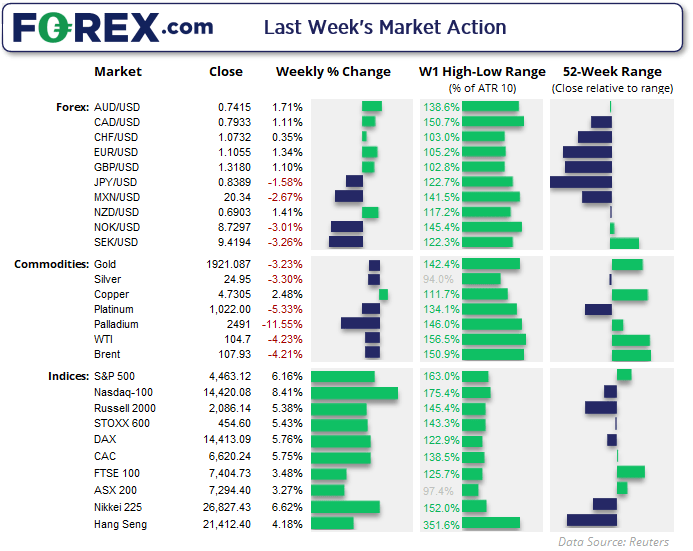 美股上周连续反弹四天,周五更是强力收尾。标普500指数斩获202011月以来最大单周涨幅,周图形成看涨吞噬K线。但上周表现最好的还是纳斯达克100指数,其上涨8.4%并创下4周高点。周五也是12月以来成交最活跃的一天,这增强了我们的看涨信心。我们在周四的视频中详细分析了成交量指标,并给出看涨观点。纳斯达克100指数收盘略高于其50天指数移动均线,而且200天均线在14688,不到一天的平均真实波幅。