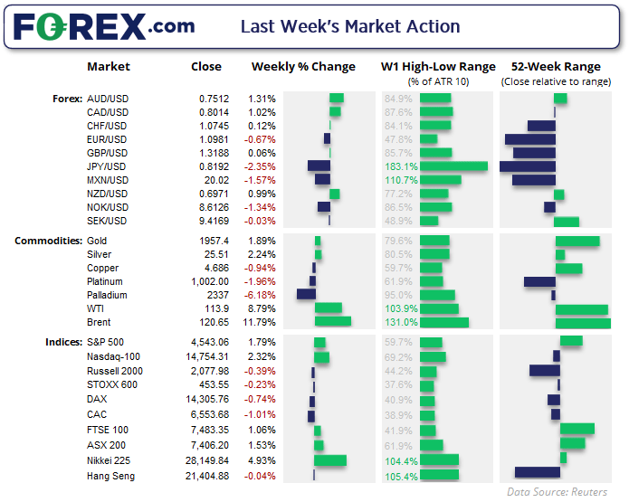 纳斯达克100指数已自本月低点强力反弹,幅度达到13%左右(相比之下标普500指数和道指反弹幅度分别为9.4%8.3%),确实连续第二个时段收上200天指数移动均线,但周五形成的看跌锤子K线表明多头对马上推高抱持犹豫心态。华尔街上周整体表现明显好于欧洲股市,后者的DAXSTOXX双双陷于横盘区间。中国A50和恒指则调头向下,人们不由得怀疑两者是否已各自触顶。而周末有关上海市将封城的消息,可能在今天进一步打击该地区股市。