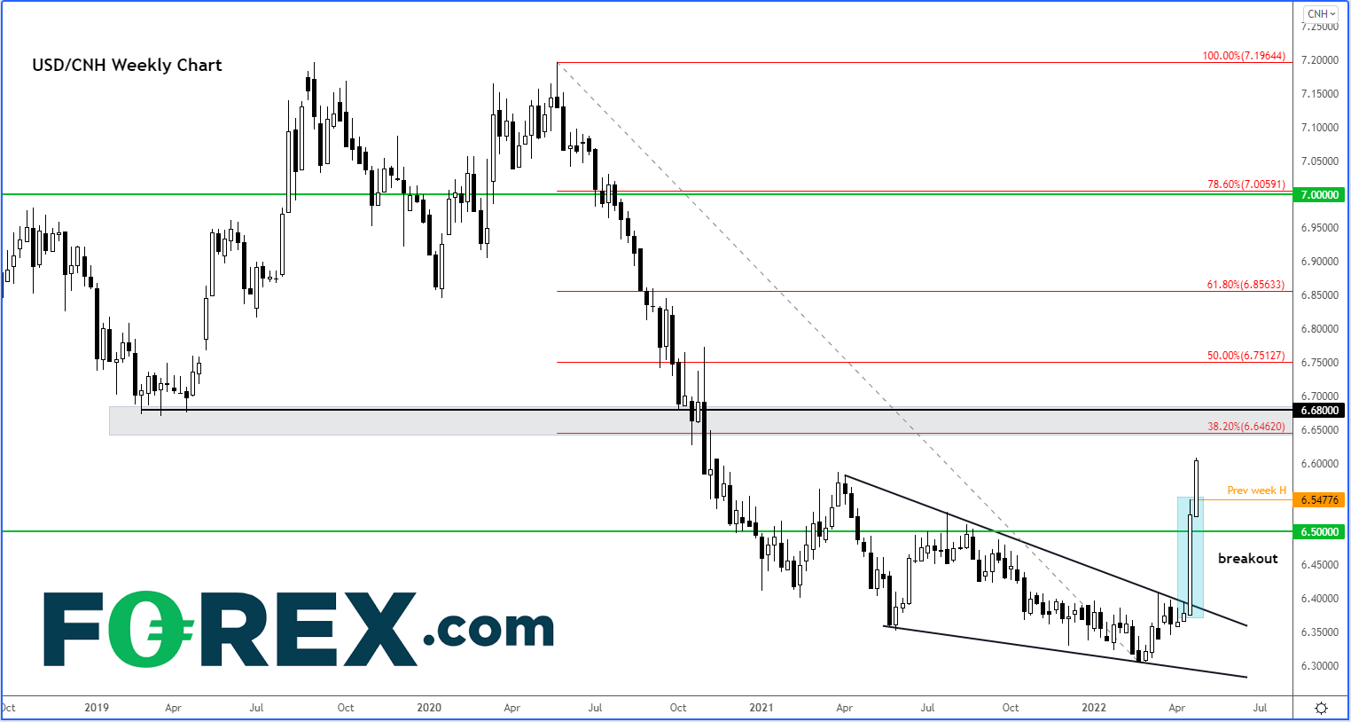 事实上,对中国经济的担忧之情推动美元/离岸人民币打破上周的盘整形态后大涨,技术面也涌现跟风买盘(即人民币抛盘):