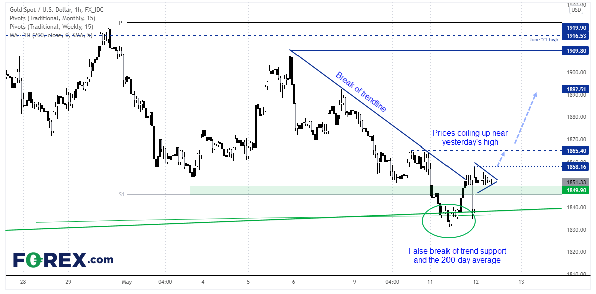 美国4月通胀率确实低于3月,只是回落力度不及预期。食品价格月率上涨0.9%,年率上涨9.4%;能源价格月率下跌2.7%,但年率上涨30.3%。数据公布后市场闻讯而动,忙于解读数据本身的好坏及其对加息周期的影响。最终我们认为数据没有改变任何事情,既不改变美联储多次加息50个基点的轨迹以及加息75个基点并非基本情况,亦不增减加息75个基点的几率。而交易者明显期待通胀是否业已触顶的明确信号,但目前仍未得到。