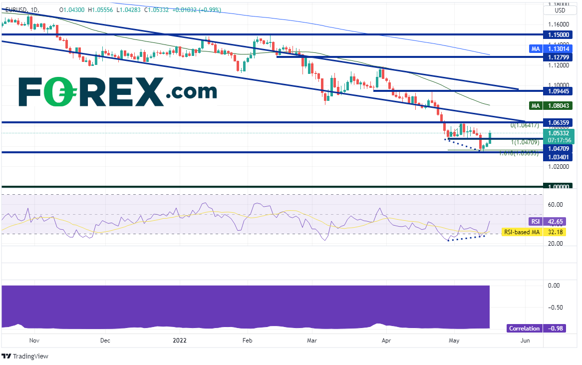 永远不要小看美国消费者,4月无惧高通胀继续实现零售销售增长。美元指数和欧元/美元来到关键价位处,后市进行修正还是继续各自的长期趋势?市场或倾听鲍威尔讲话后再做进一步的判断。