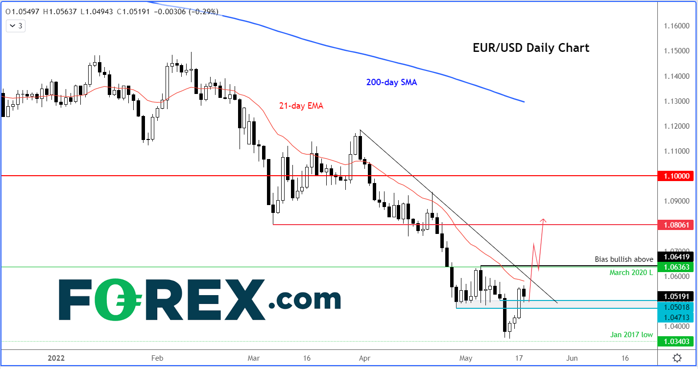 今天早上发布的欧元区CPI显示其被小幅下修,但通胀率依然处于7.4%的历史高点,什么都没变。最近我们听到来自欧洲央行官员们的大量强硬评论,今后这种声音只会多不会少。在这样的背景下,欧元/美元是否一改跌至平价的趋势,反而在1.05附近筑底后走高?