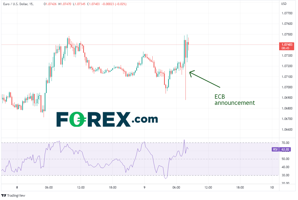 利率决议甫一宣布,欧元/美元就看到了欧洲央行预告7月和9月加息,从而迅速上涨近20个点子。而央行虽然没有给出9月加息的幅度,市场却认为可能是50个基点。