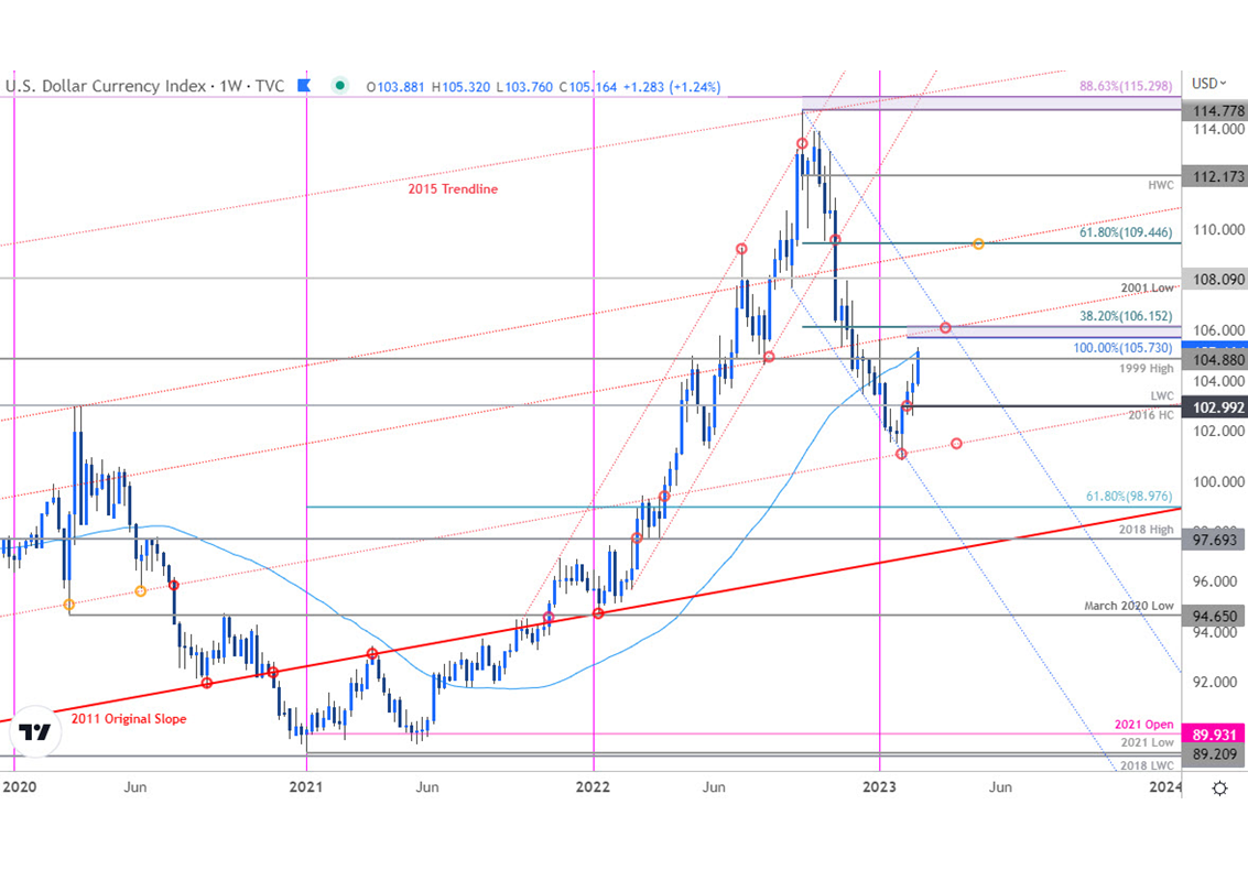 美元指数本周收高,连续第四周上涨,在月初守住关键支撑位从而实现反转。该指数现在接近关键的技术交汇区域,引起多头关注。这些点位有些是DXY周线图上重要的新目标位,有些则是已失效的点位。