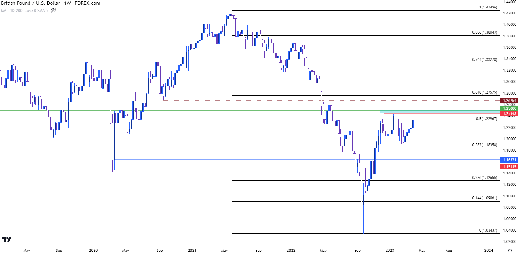 虽然2023年的第一周走势坎坷,但欧元/美元在1.0500附近获得支撑,随后非常糟糕的服务业PMI报告推动美元再次走弱。这使得欧元/美元延续涨势,最终在2月初触及阻力位1.1033。这是从去年2月到9月低点的主要走势的76.4%斐波那契回撤位,价格在此处遇阻后,空头接管了接下来六周的大部分时间,直到另一个支撑位出现。