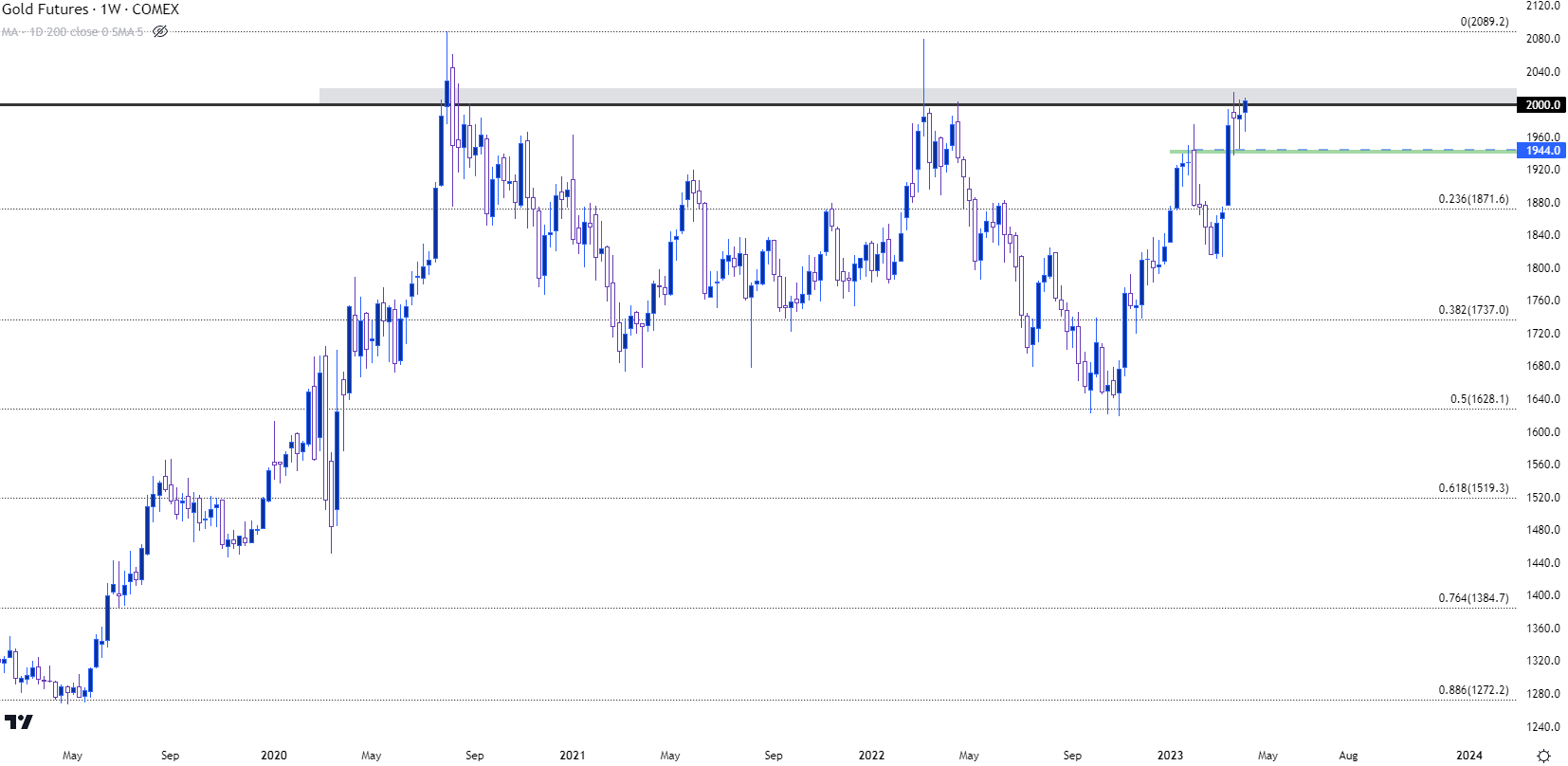 到了这一次,围绕美国银行业的担忧逐渐显露并影响走势——过去两周金价都在测试2,000美元的阻力位。多头在上上周周初再次发力,价格迅速被推高至年内高点2,015美元。