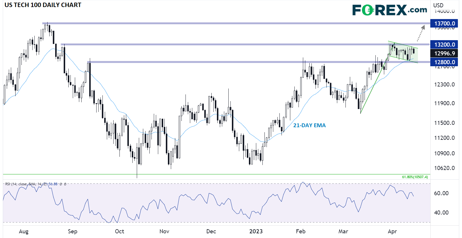 - 如果指数能够突破13,200,过去一个月以来的看涨旗形可能会延续强劲涨势。