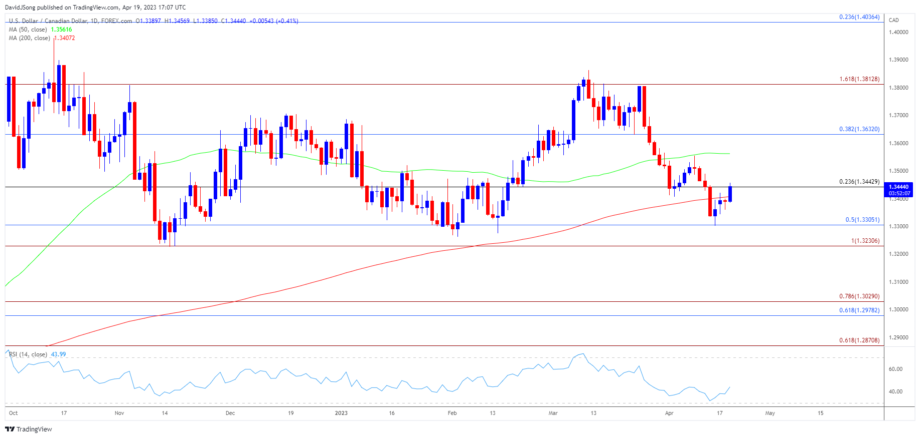 图表由策略师David Song编制;美元/加元在触及2月低点(1.3263)之前反转并重回200日均线(1.3407)上方,可能会继续扩大自月内低点(1.3301)以来的反弹,因为它正跟随长期均线的正斜率移动。