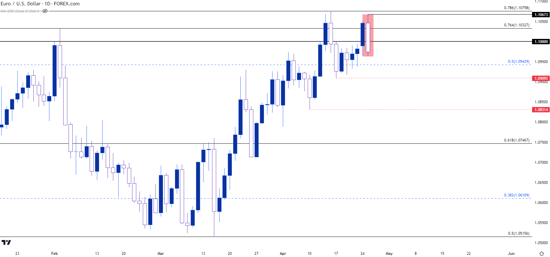 图表由James Stanley编制,Tradingview上的欧元/美元