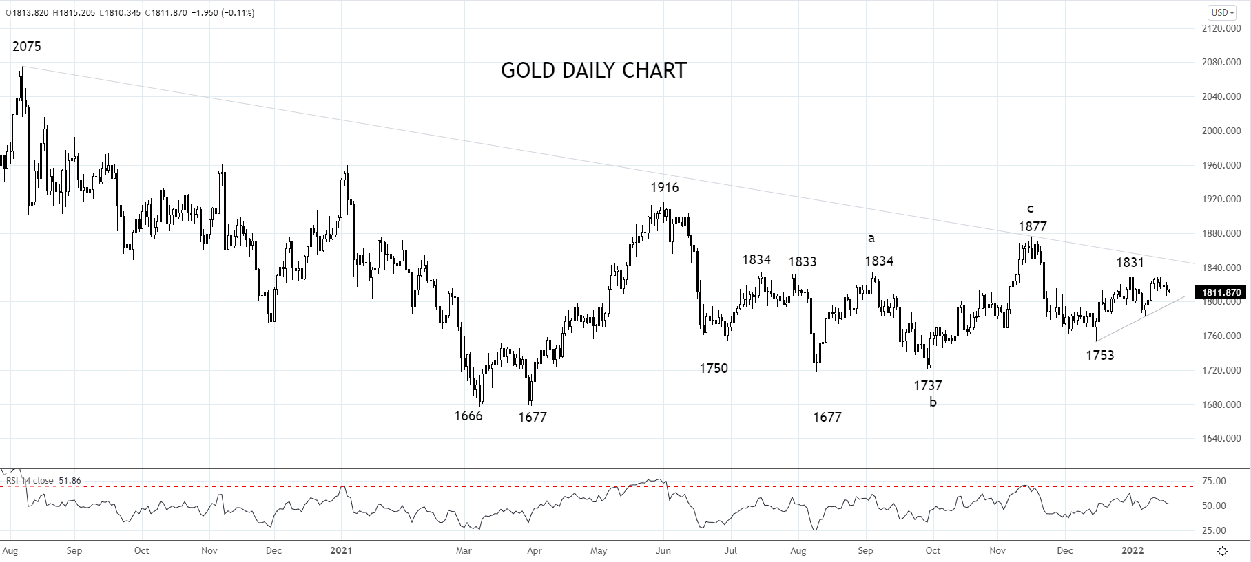 技术面看,黄金多空争夺战中有必要重点关注1830/1850这个枢轴点,在其上看涨,而在其下看跌。