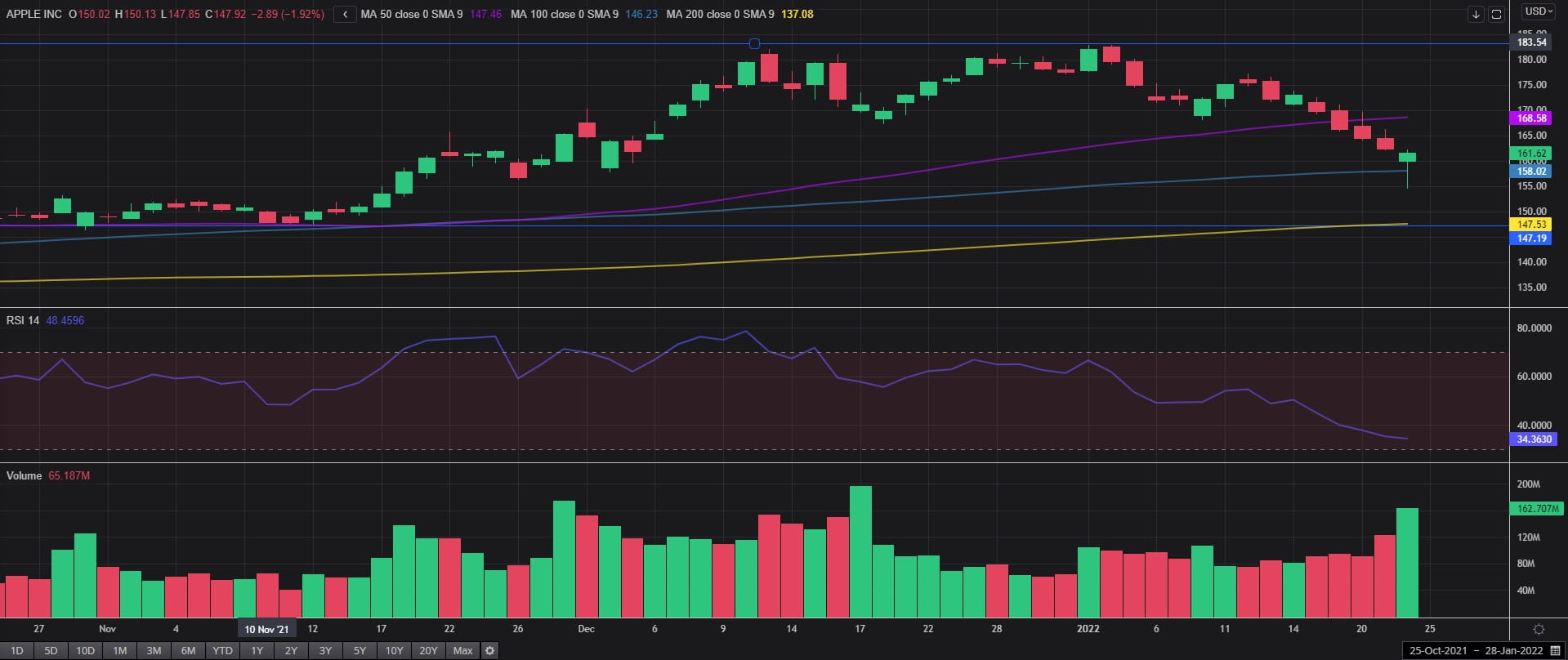 苹果股价年初以来跌逾10%,基本符合科技巨头新年整体下跌的趋势。