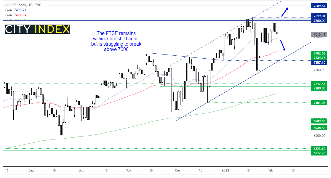 富时100指数很难升穿7600